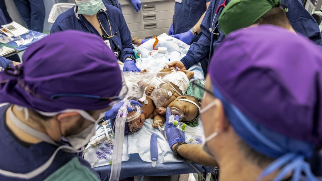 사진/ 달라스 모닝뉴스, 포트워스 쿡 어린이 병원 (A team of medical professionals operate on conjoined twins JamieLynn and AmieLynn at Cook Children’s Medical Center in Fort Worth on Monday, Jan. 23, 2023. The operation to separate the siblings took 11 hours to complete.(Aggie Brooks / Cook Children’s Medical Center)