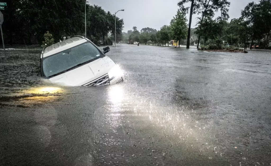 사진/ NBC 뉴스 (An SUV is stranded in a ditch in a stretch of street flooding during a severe storm Thursday in Spring, Texas.Brett Coomer / Houston Chronicle via Getty Images)
