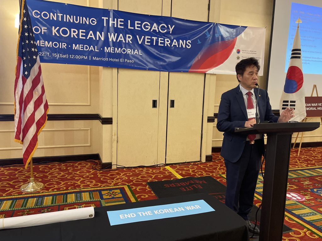 지난 15일(토) 엘파소에서 열린 ‘한국전쟁 참전용사의 유산을 이어가며’ 행사에 참석한 박요한 회장은 한국전쟁의 완전한 종결과 한반도 평화유지를 위한 ‘종전선언’의 정당성을 피력했다.