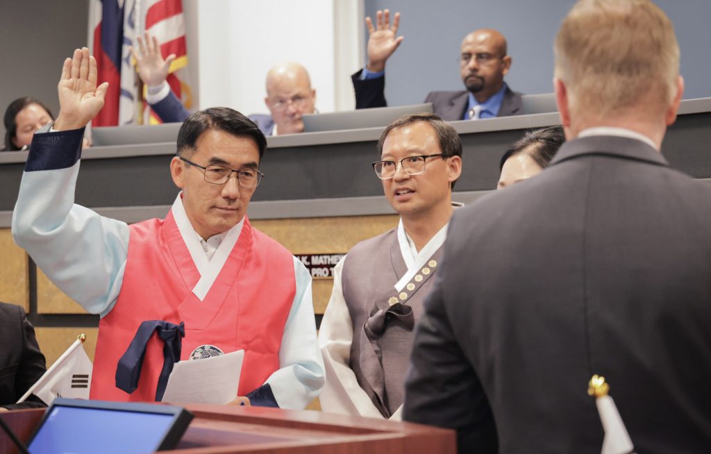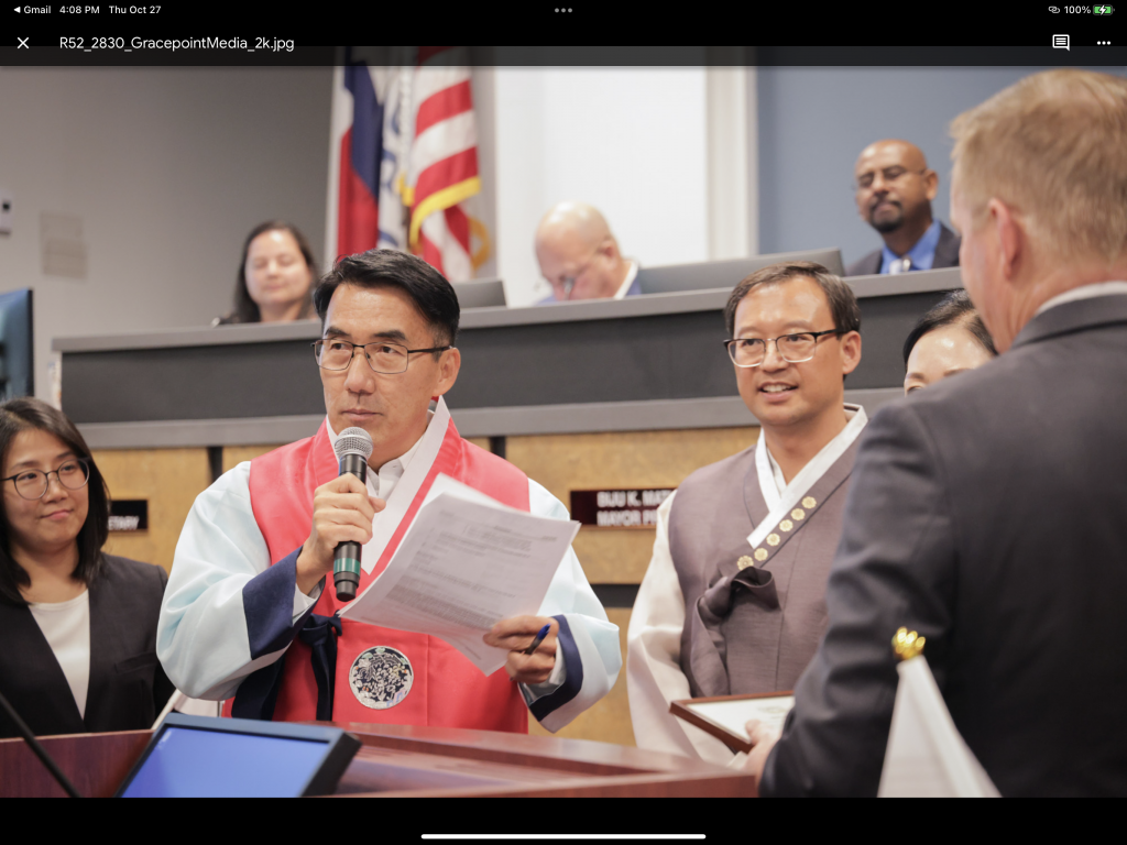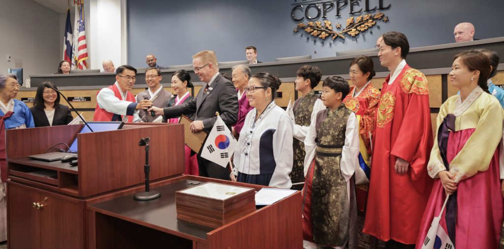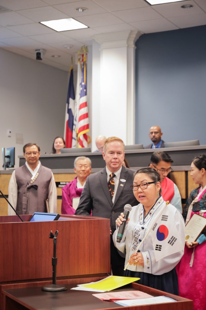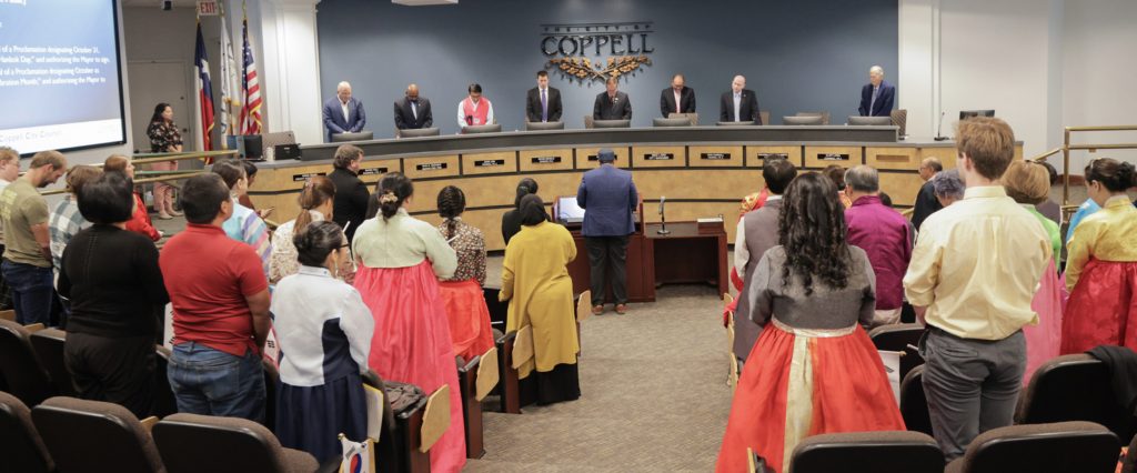 북텍사스 최초로 한복의 날이 선언됐다. 지난 25일(화) 코펠시의회에서 한복을 입은 한인들이 참가한 가운데 “한복은 한국 고유의 의복”임을 천명했다. 선언문은 한복에 대해 “기원전 2333년부터 대한민국 최초의 왕조인 단군왕조부터 이어져온 것이며 단군영정에서도 한복을 입고 있음을 확인할 수 있다”고 적었다.