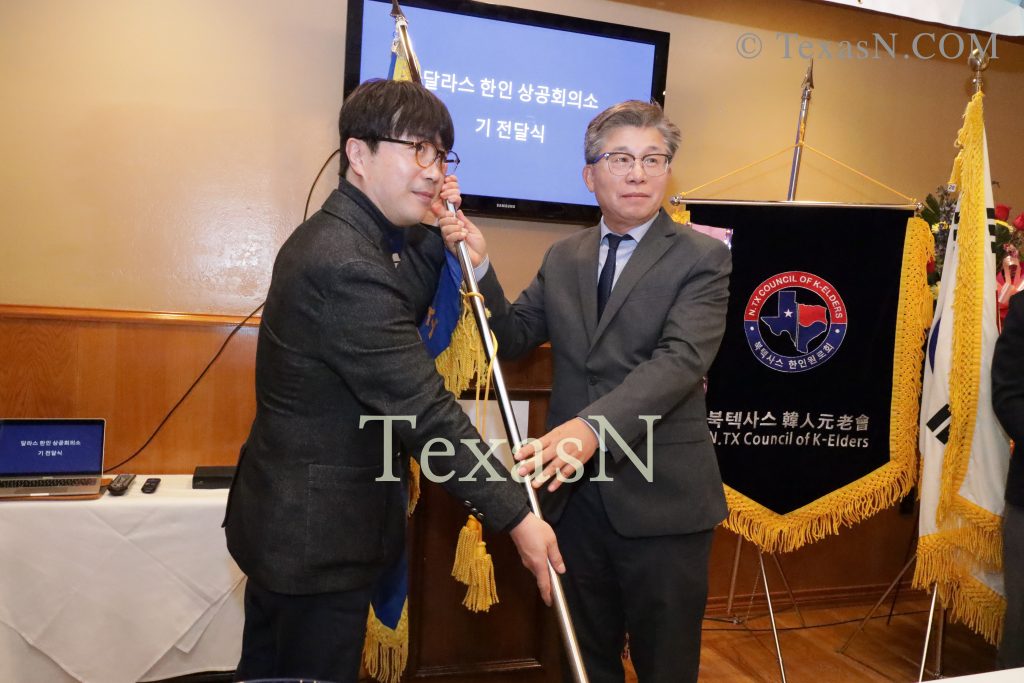 지난 9일(금) 달라스 한인상공회의소는 전임 김현겸 회장이 신임 이상윤 회장에게 상공회기를 전달하고 32대 업무를 시작했다. 32대 이상윤 회장과 신임회장단은 이날 달라스 한인상공인들을 위한 단체로 거듭날 것임을 천명하고 자영업을 포함해 한인기업들이 실질적인 혜택을 받을 수 있도록 조력할 방침이다.