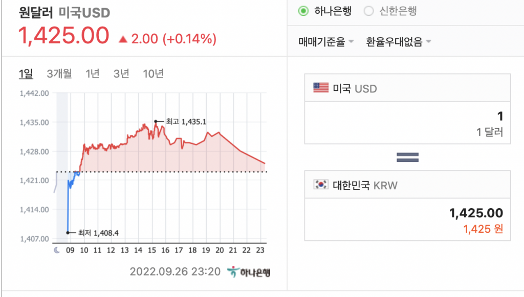 [환율소식] 미친듯이 상승하는 원달러환율 … 1,425원