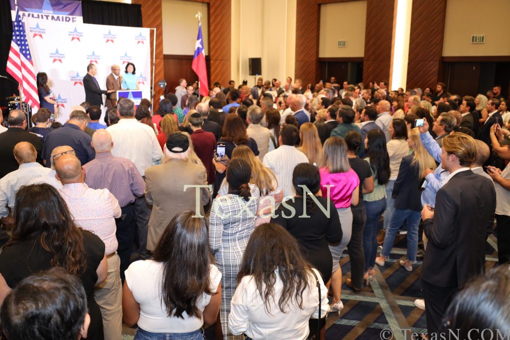[사진=텍사스N] 7일(화) 오후 7시 투표마감 이후 존 위트마이어 캠프는 휴스턴 다운타운에 위치한 메리엇 호텔에서 개표상황을 지지자들과 함께 지켜보는 파티를 개최하고 지지자들의 연호를 받으며 결선투표 승리를 다짐했다.