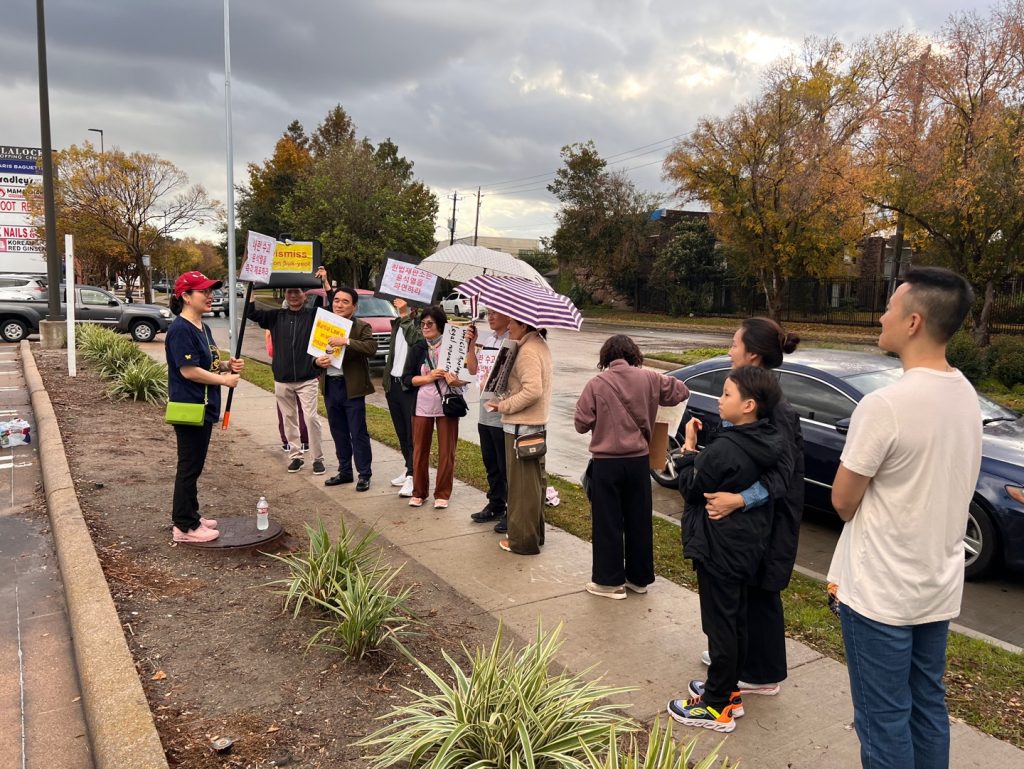 사진/ 휴스턴 한인시민단체 ‘함께맞는비’가 지난 14일(토) ‘윤석열 파면촉구’집회를 개최하자 일부 극우성향 한인들이 집회참가자들에게 욕설을 퍼붓고 집회를 방해하기 위해 손팻말을 들고 함께 서 있는 등 소란을 피운 것으로 확인됐다.