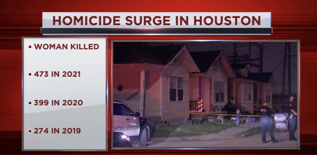 휴스턴 경찰당국에 따르면 휴스턴 지역에서 발생한 살인사건은 3년동안 꾸준히 증가했다.  2019년 274건의 살인사건이 발생했고 2020년에는 399명이 목숨을 잃었다. 그리고 2021년 30일(목) 기준 현재까지 총 473건의 살인사건이 발생했다.