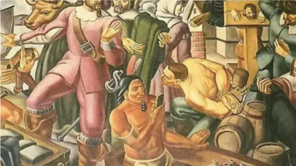 워싱턴DC 스미스소니언 국립 우편 미술관이 소장한 움베르토 로마노의 그림에서 아이폰을 연상케하는 물체를 들고 있는 북미원주민 모습이 발견됐다.