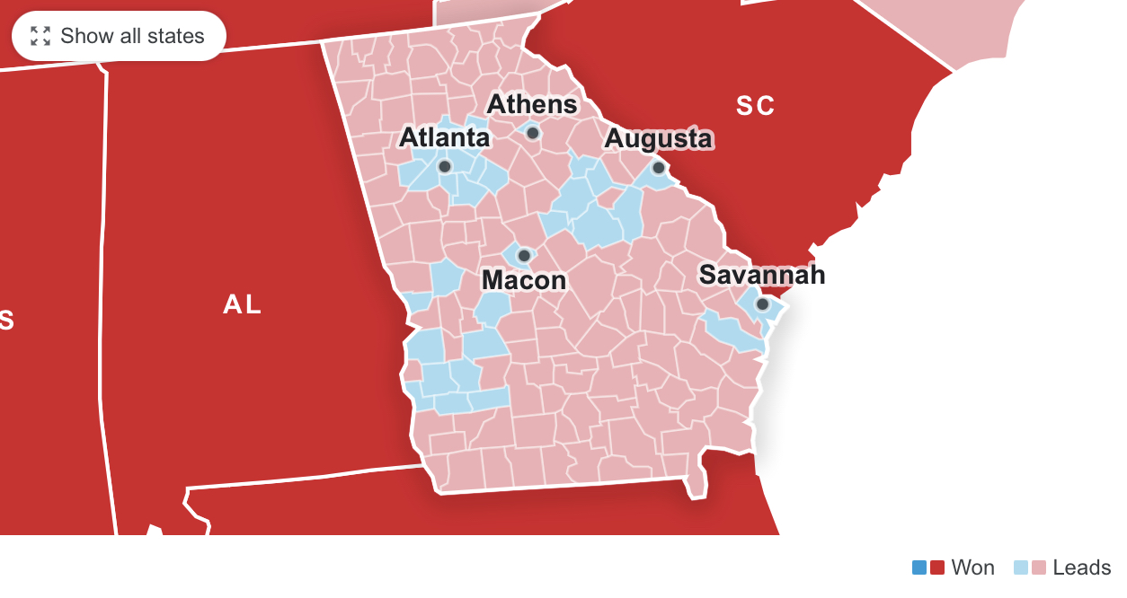 조지아 (선거인단16명) – 개표 99% 완료