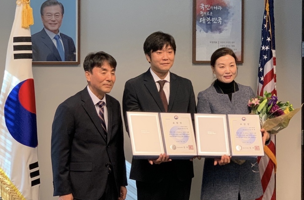 2021년 외교부장관 표창장에 김미희 한인회 이사, 최일용 실무관