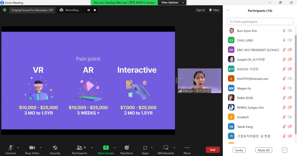 조직위에 따르면 예선전은 그룹1과 그룹2로 나눠 온라인 줌 미팅으로 2주에 걸쳐 진행됐으며 참여한 회사들은 주어진 10분내 자사의 경쟁력을 부각하는데 집중했다.
