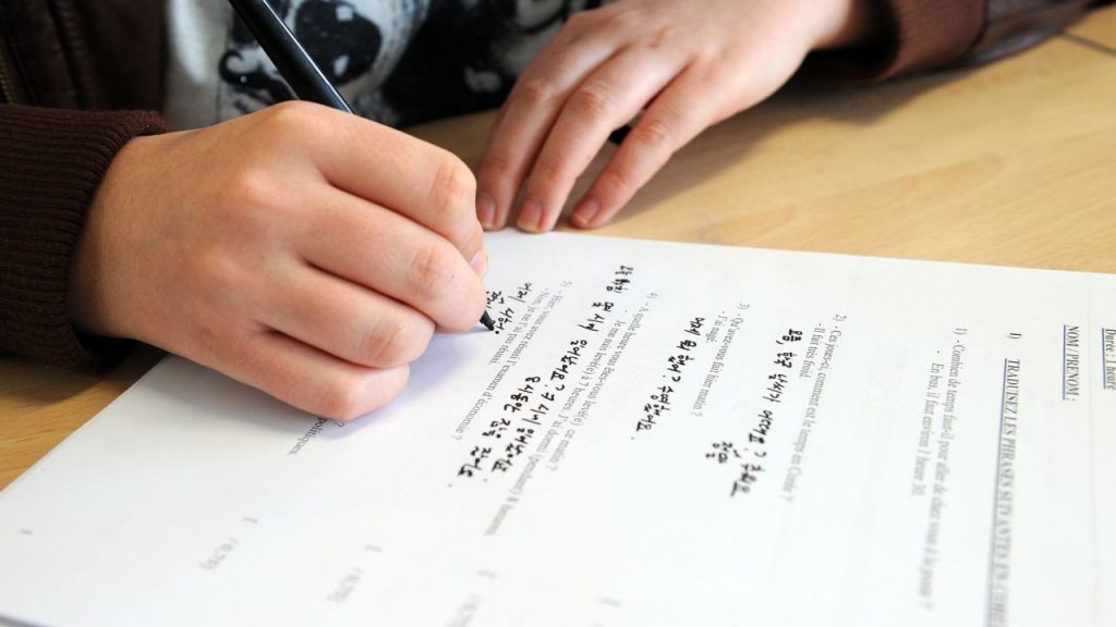 사진/ CNN (A French student takes a Korean exam at the Universite of La Rochelle on April 5, 2013.)