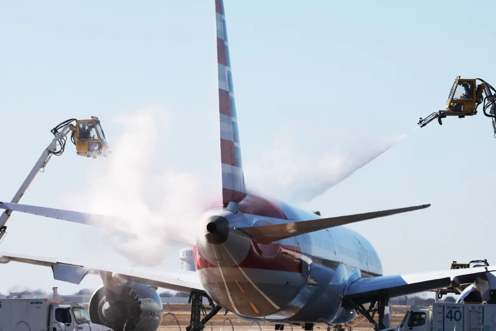 사진/ 달라스모닝뉴스 (An American Airlines plane goes through deicing procedures at Dallas Fort Worth International Airport on Monday, January 15th, 2024.(Irwin Thompson / Staff Photographer))