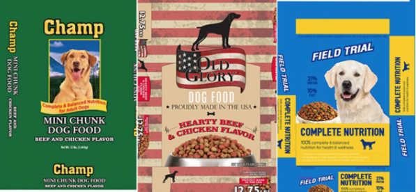 - Old Glory Hearty Beef & Chicken Flavor Dog Food, 4 lb. bags, UPC 7015514339Lot Code TE3 3/APRIL/2020Lot Code TE2 4/APRIL/2020