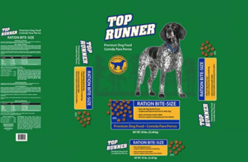 - Top Runner Premium Dog Food, 50 lb. bags, UPC 3540650070Lot Code TB1 3/APRIL/2020