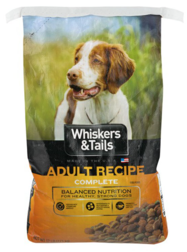 - Whiskers & Tails Adult Recipe Complete Dog Food, 17 lb. bags, UPC 2114003022Lot Code TC2 4/APRIL/2020