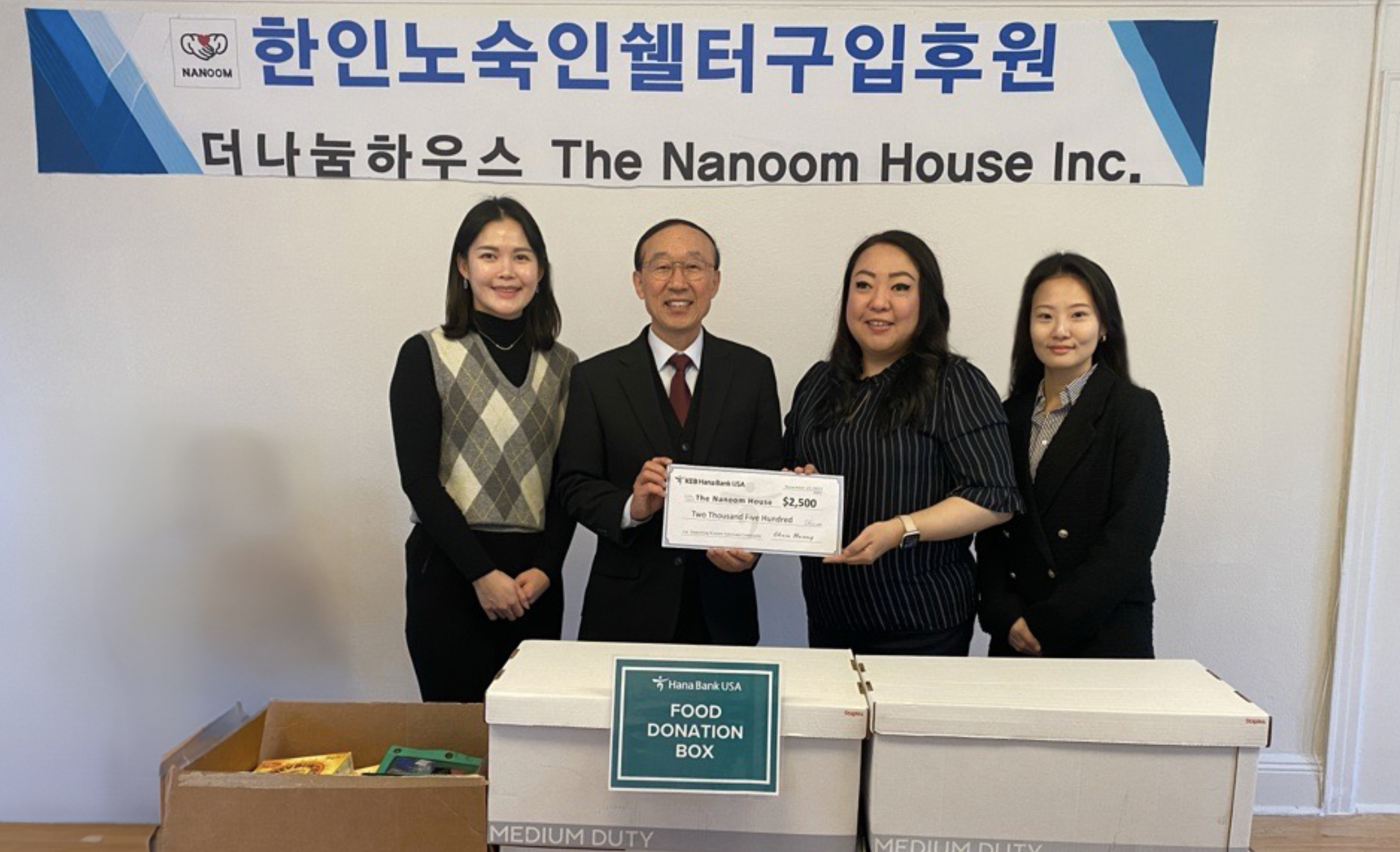 KEB 하나은행 USA 한인 비영리단체 더나눔하우스와 21희망재단에 5,000달러와 캔 푸드 8박스를 기부했다.